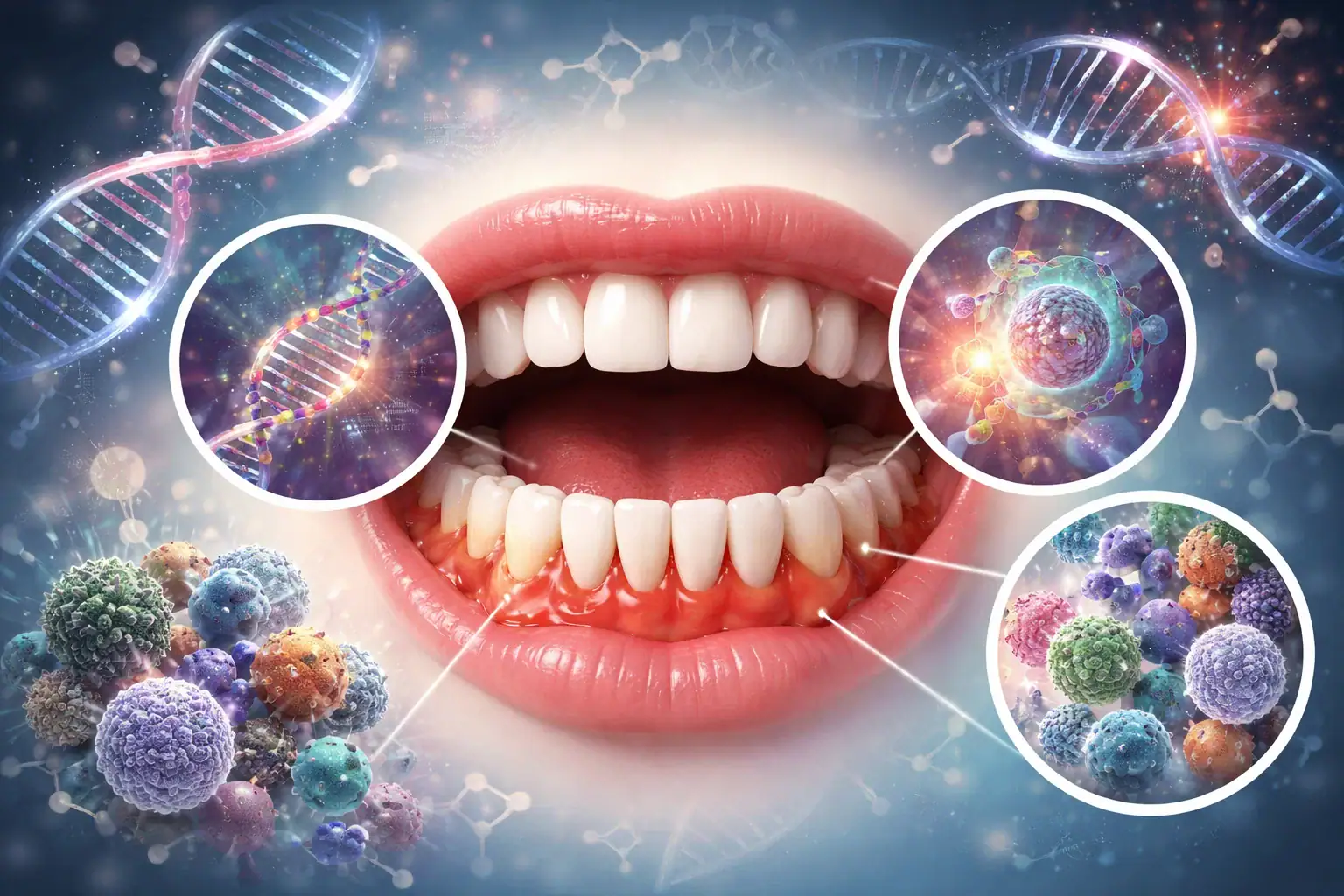 Research suggests that up to 30–50% of susceptibility to periodontal disease may be influenced by genetic factors. This means some individuals are biologically more vulnerable to inflammation and tissue breakdown, even with good oral hygiene.